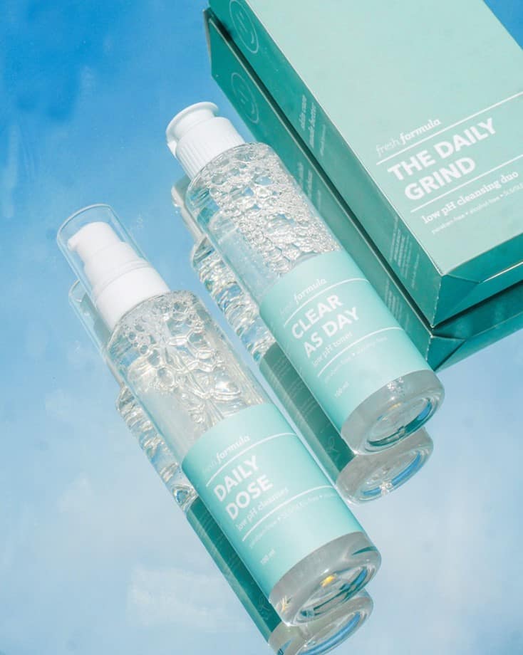 The Fresh Formula Daily Grind Low pH Duo is a mild cleanser and toner tag team that provides a stunningly simple solution for your skincare woes. Let’s get to know it.