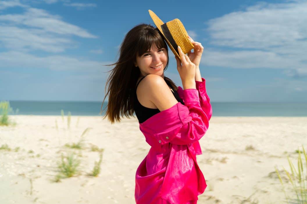 - Add a touch of highlighter balm or shimmer stick on your cheekbones for a beach-glow finish.